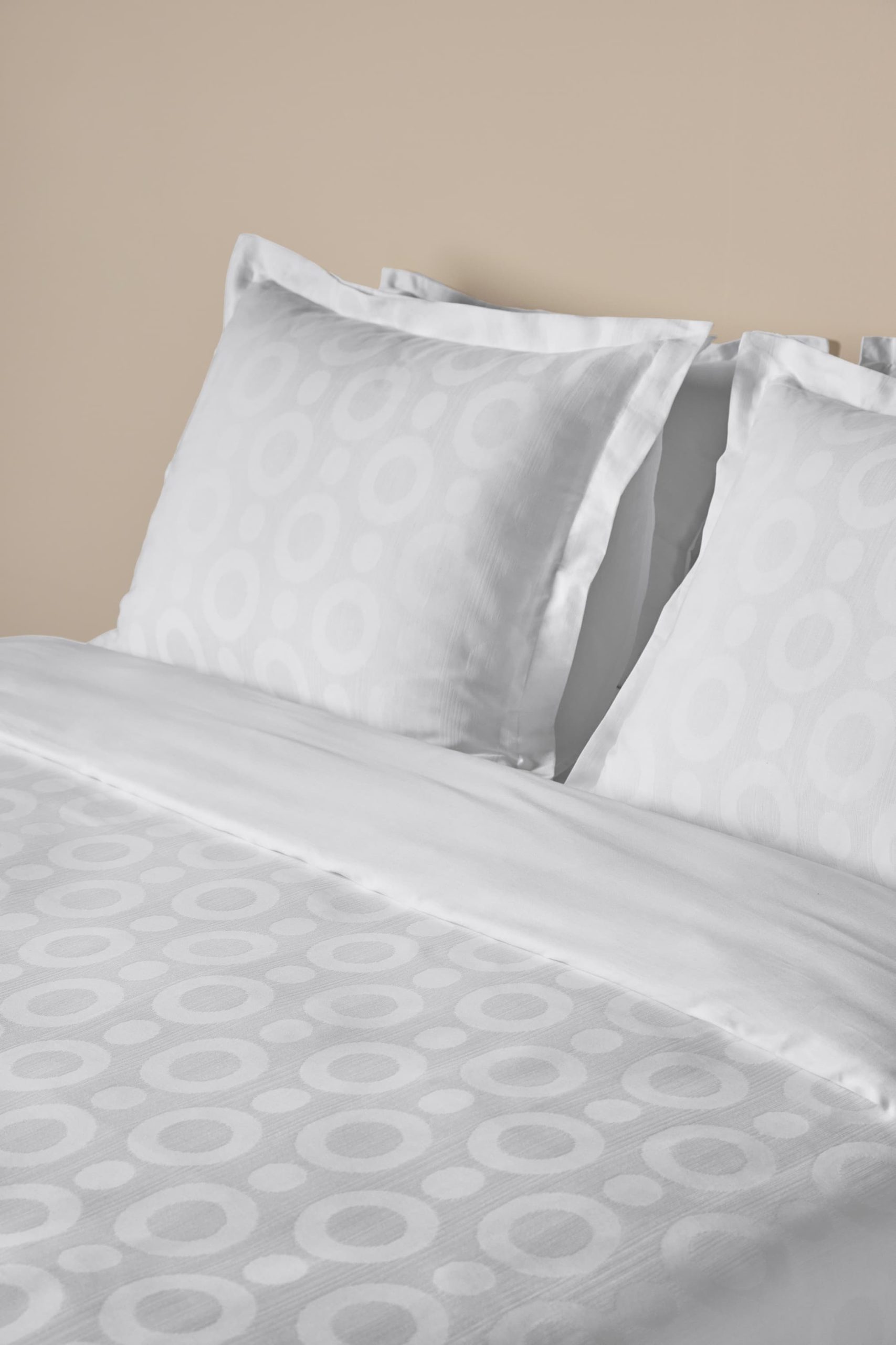 Denk aan zachte stoffen die nog wel enig gewicht hebben en subtiele jacquard geweven stoffen in wit op wit als kleurstelling. Zacht katoen satijn als materiaal. Deze collectie is volgens het merk gemaakt voor zij die prijs stellen op het allerhoogste slaapcomfort, met slimme details en een elegante afwerking die lang bijblijven, ook wanneer de lichten al uit zijn.